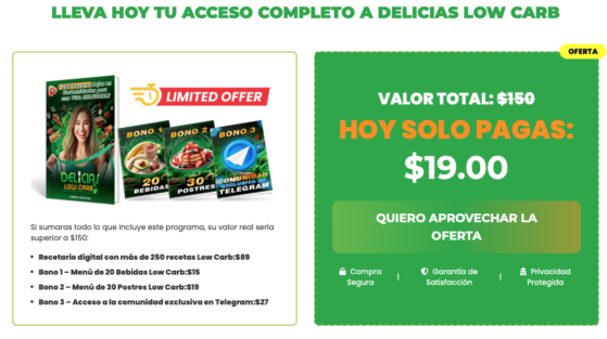 Con Delicias Low Carb, no solo aprenderás a preparar recetas diferentes. Este recetario es la herramienta que cambiará tu relación con la comida y te dará resultados visibles y sostenibles en tu salud y bienestar.