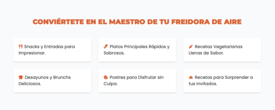 Cocina platos crujientes, saludables y deliciosos en minutos. Sin aceite, sin caos, sin rutina. Solo sabor y practicidad.